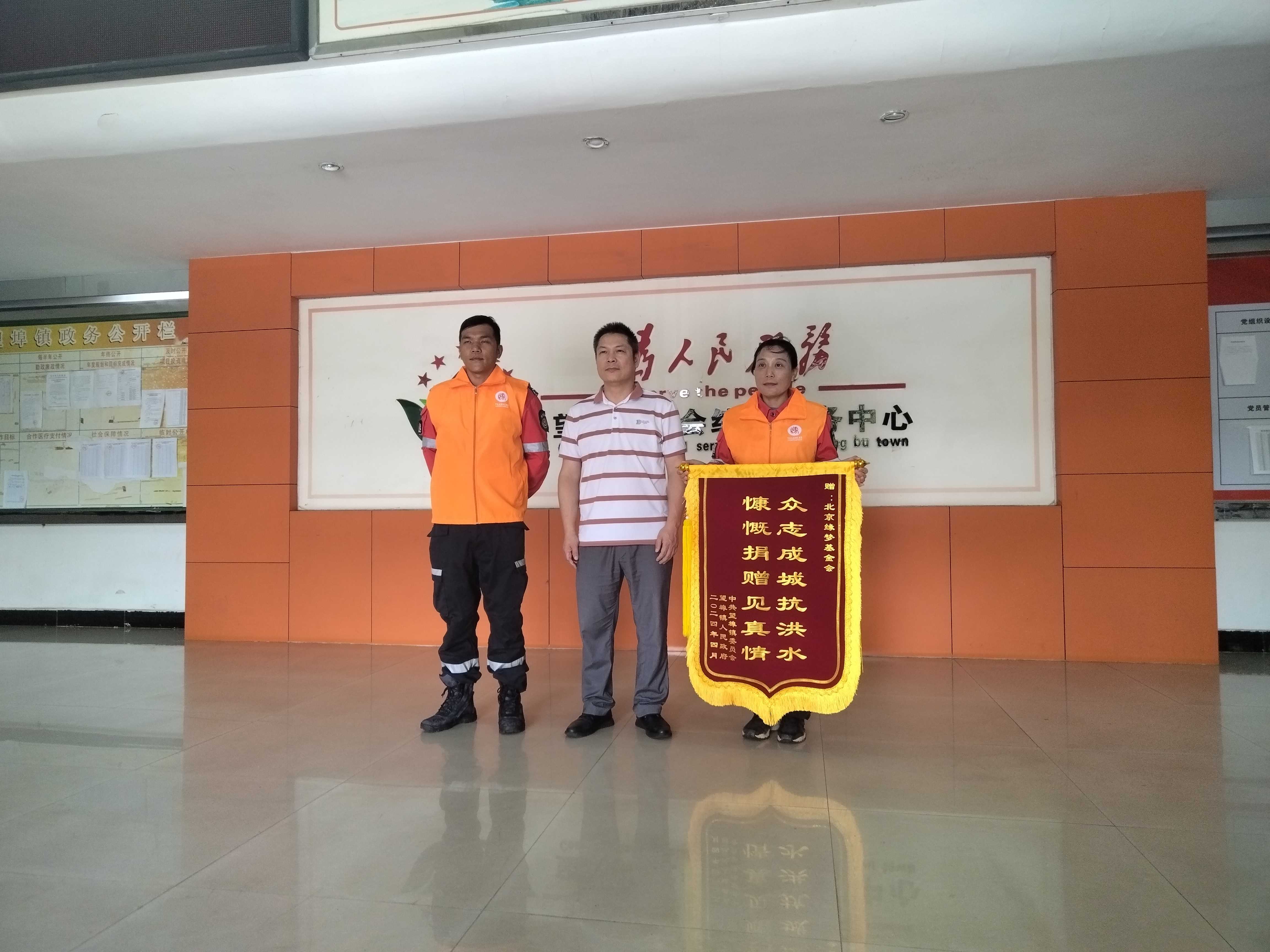广东受灾地区向北京缘梦公益基金会赠予锦旗。