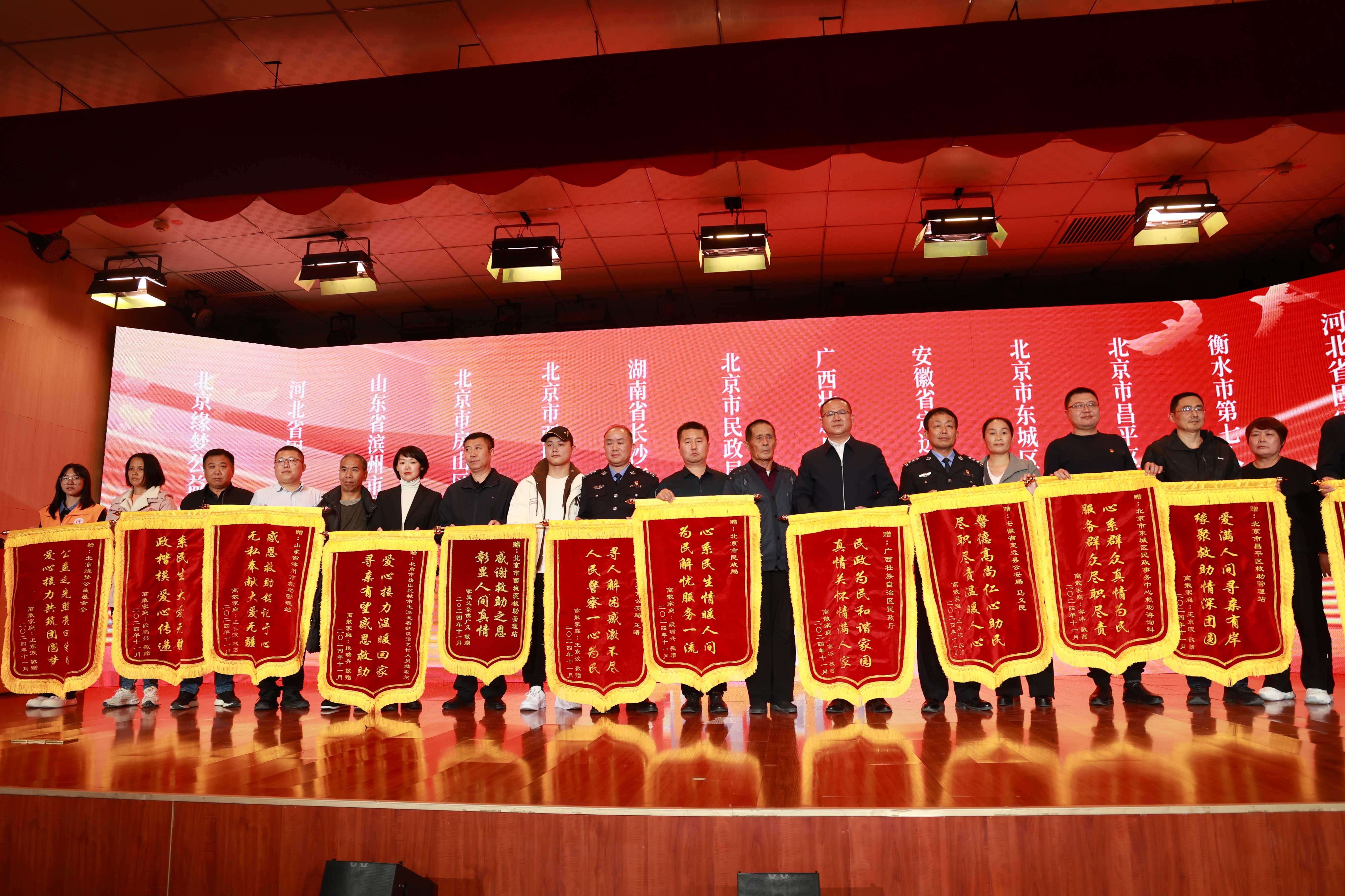 2024年11月19日,北京缘梦公益基金会联合北京市民政局在河北衡水市第七人民医院举行“共赴团圆 缘梦回家”北京市长期滞留流浪乞讨人员认亲直播活动,民政部社会事务司、北京市民政局、北京缘梦公益基金会、衡水市民政局、衡水市第七人民医院等领导以及合作开展寻亲工作的公安干警等参加认亲直播活动,共同见证了3组离散家庭团圆,认亲家庭为北京缘梦公益基金会赠予锦旗,表示感谢!